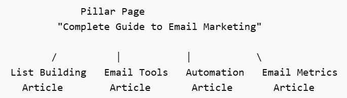 Say you run a digital marketing agency and you want to rank for ’email marketing.’ The old approach: publish one page called ‘Email Marketing Services’ and optimise it for that phrase. The new approach: build a whole content cluster around the topic.